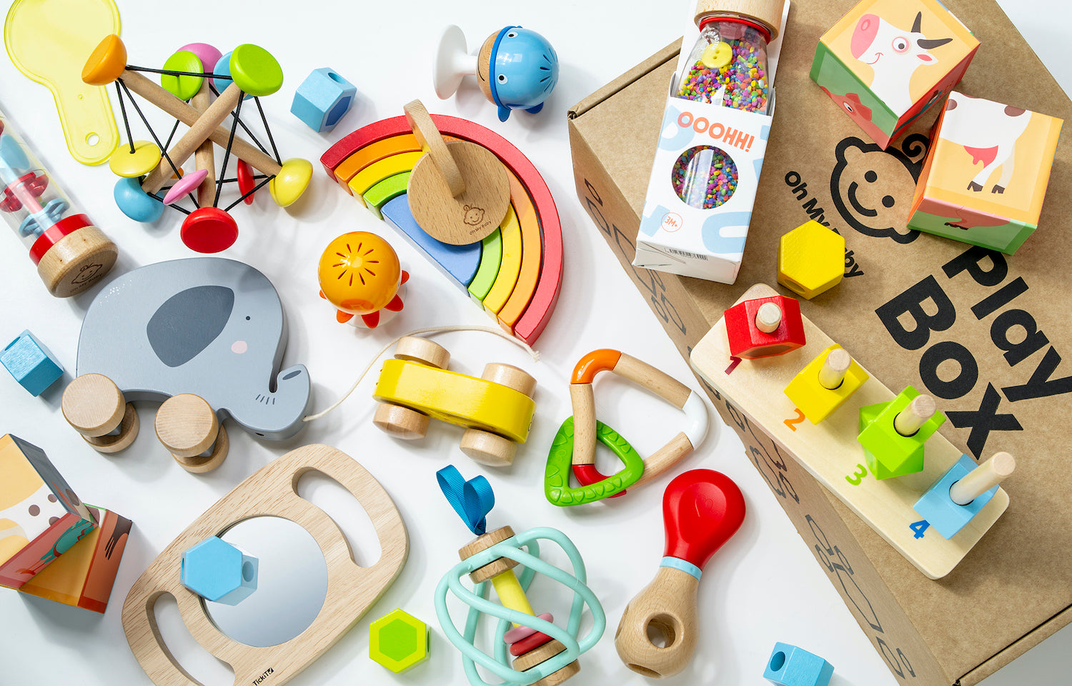 - Erhalte alle zwei Monate eine spannende Box gefüllt mit pädagogischem Spielzeug.